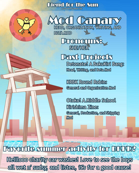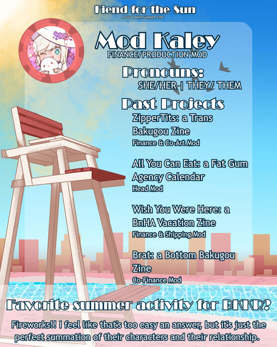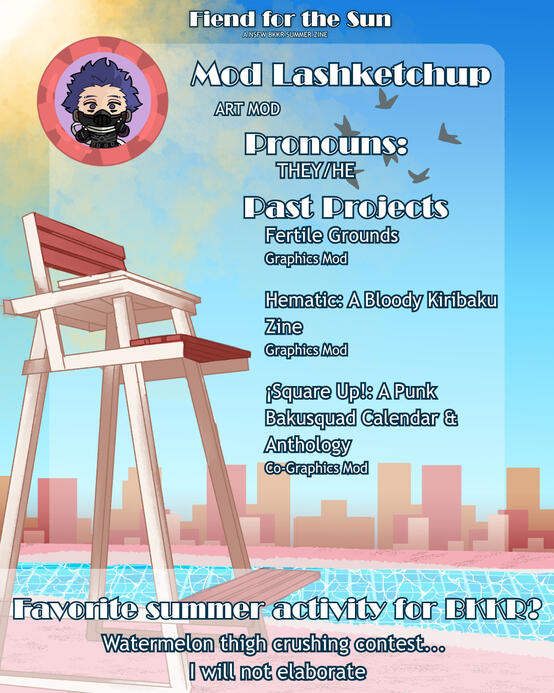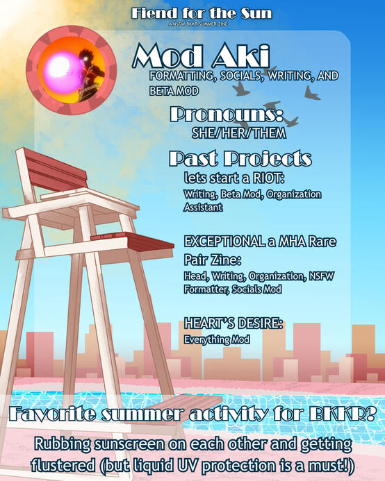 This is a NSFW summer themed zine focusing on the pairing Bakugou Katsuki and Kirishima Eijirou. This is a top Bakugou / bottom Kirishima zine.WILL KRBKKR BE ALLOWED?
